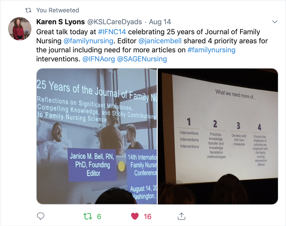 The Journal of Family Nursing (JFN) is a peer-reviewed journal that publishes scholarly work on research, practice, education, and policy issues related to families in health and illness. The mission of the journal is to extend understanding about the relationships between families, health, illness, and health care with a goal of transforming practice with families by nurses and other helping professionals. Papers will be selected for their scientific merit and creative treatment of significant issues in the field. A compelling argument for how the paper significantly extends knowledge about a particular population of families and/or the care offered to families is a central requirement. Priority will be given to papers that focus on family interventions and knowledge transfer or knowledge translation of family nursing theory to practice settings. Interprofessional perspectives are encouraged, as are international contributions.