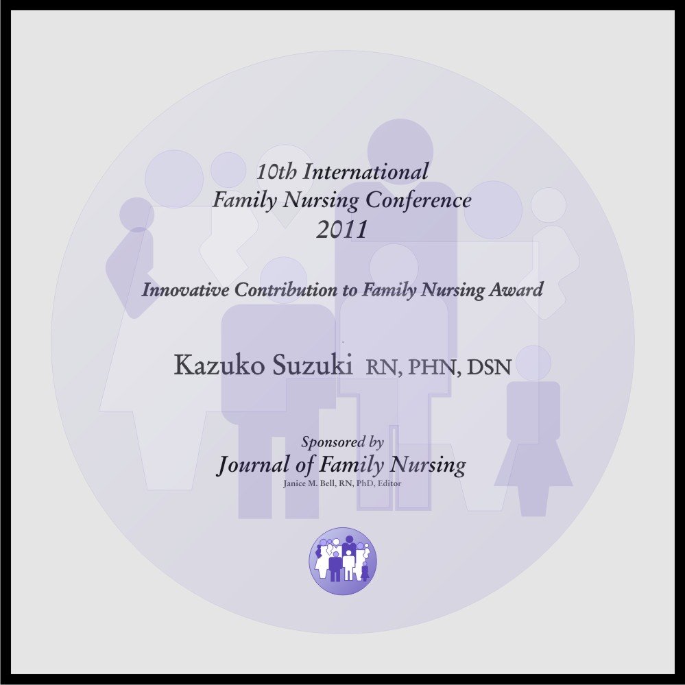 Bell, J. M. (2011). Innovative Contribution to Family Nursing Award 2011: Kazuko Ishigaki, RN, PHN, PhD; Kazuko Suzuki, RN, PHN, DSN; Sayumi Nojima, RN, PHN, DSN; and Nami Kobayashi, RN, CHN, PhD. Journal of Family Nursing, 17(4), 411-415. doi:10.1177/1074840711424966